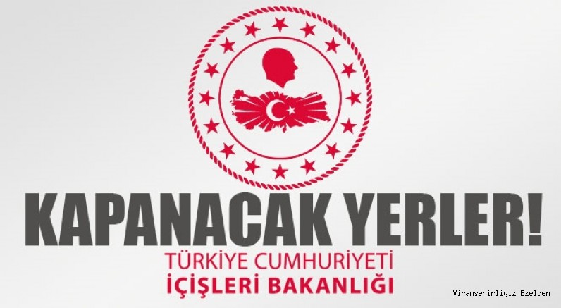 İşte kapalı olacak yerler; tiyatro, sinema, gösteri merkezi, konser salonu, nişan/düğün salonu, çalgılı/müzikli lokanta/kafe, gazino, birahane, taverna, kahvehane, kıraathane, kafeterya, kır bahçesi, nargile salonu, nargile kafe, internet salonu, internet kafe, her türlü oyun salonları, her türlü kapalı çocuk oyun alanları (AVM ve lokanta içindekiler dahil), çay bahçesi, dernek lokalleri, lunapark, yüzme havuzu, hamam, sauna, kaplıca, masaj salonu, SPA ve spor merkezlerinin faaliyetleri geçici bir süreliğine durdurulacak.