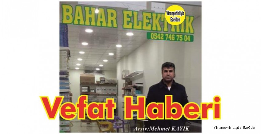 Viranşehir'li Hemşehrimiz YÜZÜCÜ Ailesinden; Merhum Hacı Ali Nahro(Ali YÜZÜCÜ)’nin Yeğeni, Mehmet YÜZÜCÜ, Halil İbrahim YÜZÜCÜ ve İsa YÜZÜCÜ’nin Ağabeyleri, Elektrikçi Ali YÜZÜCÜ Geçirmiş Olduğu Elektrik Çarpması Sonucunda Viranşehir Devlet Hastanesinde Vefat etmiştir. İrtibat : Kardeşi İbrahim YÜZÜCÜ : 0542 775 53 25