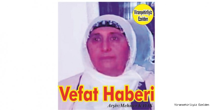Viranşehir'li Hemşehrimiz KIZILBOĞA Ailesinden; Hüseyin KIZILBOĞA’NIN Eşi, Welat KIZILBOĞA, Remziye KIZILBOĞA,Menteşe KIZILBOĞA, Halise KIZILBOĞA, Fidan KIZILBOĞA, Fidan KIZILBOĞA, Ceylan KIZILBOĞA, Berşvan KIZILBOĞA, Aylin KIZILBOĞA, Mizgin KIZILBOĞA’nın Anneleri, Muhabbet KIZILBOĞA Vefat Etmiştir. İrtibat : 0546 212 34 99 - 0539 521 20