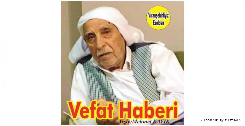 Viranşehir'li Hemşehrimiz ETLİ Ailesinden; Ahmet ETLİ, Mustafa ETLİ, Kerim ETLİ, Aziz ETLİ, Nuri ETLİ, Abdulkadir ETLİ ve Basri ETLİ’nin Babaları Süleyman ETLİ Vefat Etmiştir. İrtibat : Kerim Etli :0546 250 22 20 – 0505 787 05 22