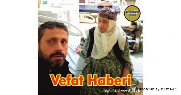 Viranşehir'li Hemşehrimiz YILDIZ Ailesinden; Ali Yıldız’ın Eşi, Nihat Yıldız, Mehmet Yıldız ve Ahmet Yıldız’ın Anneleri Hansi Yıldız Vefat Etmiştir. İrtibat Çocukları Mehmet Yıldız: 0543 525 58 76 – Nihat Yıldız: 0542 605 58 86