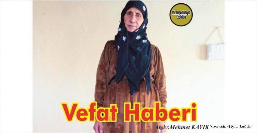 Viranşehir'li Hemşehrimiz GÜNHAN Ailesinden; Karınca Köyü Eski Muhtarı Mehmet Günhan’ın Eşi, Lütfi Günhan, Şehmuş Günhan ve Salih Günhan’ın Anneleri Gülizar Günhan Vefat Etmiştir. İrtibat :Oğlu Lütfi Günhan 0542 202 61 63