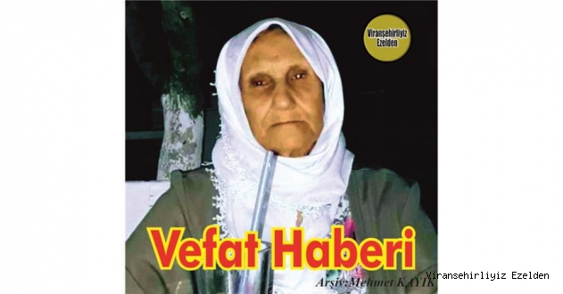 Viranşehir'li Hemşehrimiz AYDIN Ailesinden; Merhum Hacı Mehmet Özlü, Sefer Özlü’nün Kardeşleri, Merhum Ramazan Özlü, Vahap Özlü, Nursin Özlü, Nurettin Özlü, Merhum Sait Özlü, Vahit Özlü ile Murat Özlü’nün Halaları, Merhum Nedim Aydın’ın Eşi, Mahmut Aydın, Cuma Aydın Halil Aydın ve Aslan Aydın’ın Anneleri, Hacı Nazime Aydın Şanlıurfa Harran Üniversitesinde Yoğun Bakım Ünitesinde Tedavi Görmekte iken, Vefat Etmiştir. İrtibat Oğulları Mahmut Aydın: 0530 208 09 92 – Cuma Aydın: 0506 580 59 31 – Halil Aydın: 0543 495 06 63