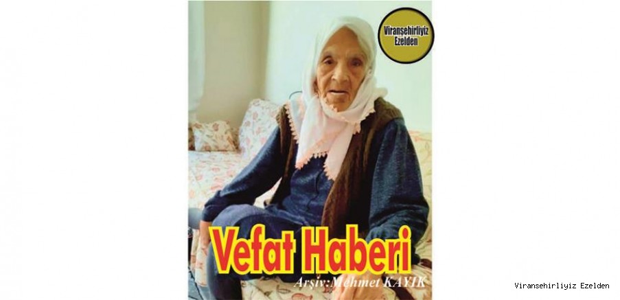 Viranşehir'li Hemşehrimiz BAŞAK Ailesinden; Merhum Davut Başak(Sobacı Davut)’ın Eşi, Süleyman Başak, Besim Başak, Sait Başak, Metin Başak(Emekli Polis Memuru) ve Tekin Başak’ın Anneleri Medhiye Başak Vefat Etmiştir. Cenazesi İkindi Namazına Müteakkip Tılhava (Şeyh Muhammed) Mezarlığında Defin Edilecektir. İrtibat Oğlu Süleyman Başak: 0544 269 12 06 - Oğlu Metin Başak:0505 523 53 47 – Torunu Davut Başak : 0542 810 70 92-Torunu Uğur Başak :0542 553 98 87