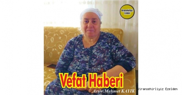 Viranşehir'li Hemşehrimiz DEMİREL Ailesinden; Merhum Hacı Davut Çim’in kızı, Merhum Halis Çim, Adil Çim, Ahmet Çim, İbrahim Çim, Merhum İsmail Çim, Merhum Necat Çim’in Kızkardeşleri, Ahmet Demirel ve Mehmet Demirel’in Yengeleri, Mahmut Demirel’in Eşi, Arslan Demirel, Hakam Demirel ve Erkan Demirel’in Anneleri Nahide Demirel İstanbul’da Vefat Etmiştir Cenaze 27 Aralık Cumartesi(Bugün) Saat: 15.30’da Kocasinan Merkez Camiisin Kılınacak İkindi Namazına Müteakkip Hadımköy Mezarlığında Defin Edilecektir. Taziyesi İstanbul Merkez Mahallesi Sakıp Sabancı Caddesi no:26 Erzurum Geyik Köyü Derneğinde yapılacaktır. İrtibat : Eşi Mahmut Demirel: 0535 541 22 16 – Arslan Demirel : 0535 334 61 39- Hakan Demirel:0541 349 37 46- Erkan Demirel: 0530 555 87 08 – Kardeşi Adil Çim:0537 477 64 63- Mehmet Demirel : 0542 396 35 35 – Ahmet Demirel:0543 583 24 24