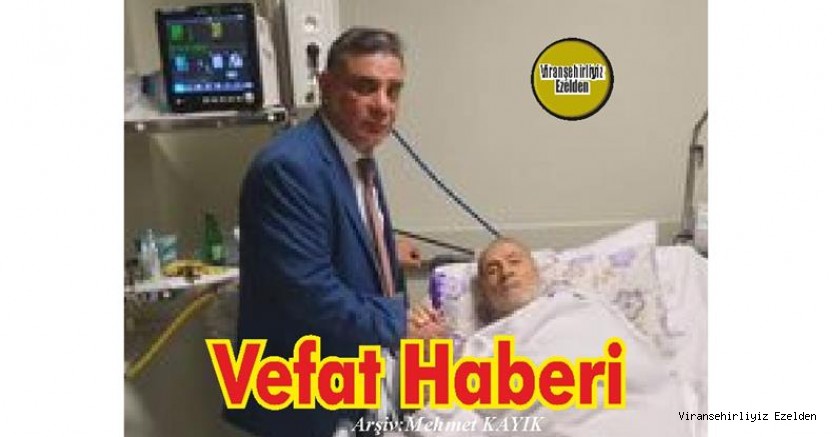 Viranşehir'li Hemşehrimiz DUYGU Ailesinden; Mehmet Zülfü Duygu, Mehmet Emin Duygu, Mahmut Duygu, Reşit Duygu ve Cemil Duygu’nun Kardeşleri, Nezir Duygu, Ali Duygu, Abdulkadir Duygu, Übeyit Duygu, Nuri Duygu, Orhan Duygu ve Lokman Duygu Babaları Hacı Abbas Duygu Viranşehir’de Vefat etmiştir. Taziyesi Viranşehir Tekye Mahallesi Hacı Hassun Öztop Taziye Evinde Yapılacaktır. İrtibat : Kardeşi Mehmet Zülfü Duygu: 0542 240 13 82 - Kardeşi Mehmet Emin Duygu: 0544 415 00 66