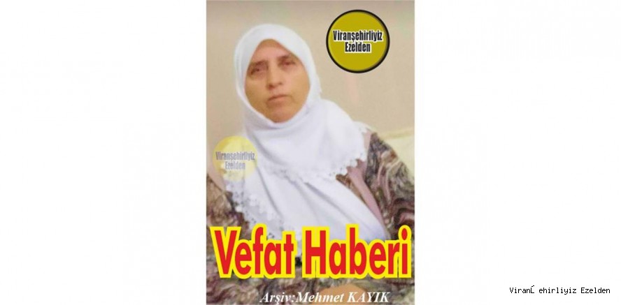 Viranşehir'li Hemşehrimiz KARADAĞLI Ailesinden; Ahmet Karadağlı’nın Eşi, Levent Karadağlı, Medeni Karadağlı, Yılmaz Karadağlı ve Mehmet Karadağlı’nın Anneleri, Barış Karadağlı’nın Yengesi Zehra Karadağlı Viranşehir’de Vefat etmiştir. Taziyesi Viranşehir Cumhuriyet Mahallesi Abdurrahman Malgir Taziye Evinde Yapılacaktır. İrtibat eşi Ahmet Karadağlı:0543 369 61 07