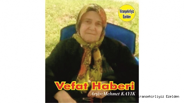 Viranşehir'li Hemşehrimiz BELKIRAN Ailesinden, Merhum Memi(Bave Delef) Topdal’ın Kızkardeşi, Delef Toptal, Arif(Hoca) Topdal, Ahmet(Hoca)Topdal’ın Halaları, Atilla Belkıran, Eyyüp Belkıran, Murat Belkıran’ın Yengeleri, Viranşehir Belediyesi Eski Zabıta Memurlarımızdan Merhum Kemal Belkıran’ın Eşi Halil Belkıran, Ahmet Belkıran ve Mehmet Belkıran’ın Anneleri, Rahime Belkıran İzmir’de Vefat Etmiştir. Taziyesi : İzmir Karşıyaka, Serinkuyu, 6196 Sokak 1 Nolu Evlerindeki Taziye evinde yapılacaktır. İrtibat : Halil Belkıran : 0535 688 91 08 - Ahmet Topdal : 0532 296 83 54