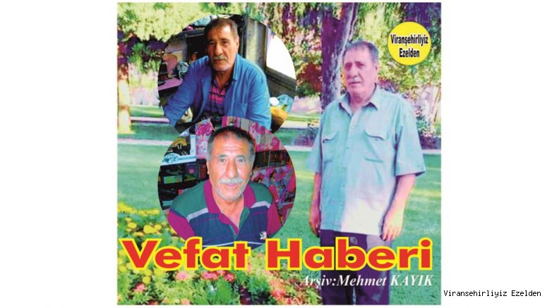 Viranşehir'li Hemşehrimiz SEYREK Ailesinden, Merhum Usta Gazeteci Eyyüp Seyrek, Hasan Seyrek, Hüseyin Seyrek’in Kardeşleri, Turgut Seyrek ve Kenan Seyrek’in Babaları Mustafa(Musto Seyrek) Seyrek Geçirmiş olduğu Rahatsızlık sonucu İstanbul’da Vefat Etmiştir. Cenazesi Yarın(15 Ekim 2019 Salı Günü) İstanbul Bayrampaşa Merkez Camisinde Kılınacak İkindi Namazı Sonrası Defin edilecektir. Taziyesi : İstanbul Fatih Viranşehirliler Derneğindeki Taziye evinde yapılacaktır. İrtibat : Oğlu :Turgut Seyrek 0543 912 38 51 - Oğlu Kenan Seyrek :0541 352 96 48 Kardeşi :Hüseyin Seyrek: 0535 353 54 12