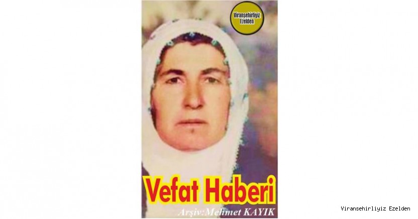 Viranşehir'li Hemşehrimiz GEÇGEL Ailesinden; Meşkini Aşireti Mervani Berinden, Merhum Hasan Geçgel(Hesenê Hemê Evdıko)’in Eşi, Hemo Geçgel, Eyyüp Geçgel ve Lokman Geçgel’in Anneleri, Gülê Geçgel(Güla Xelefo) Vefat Etmiştir. Taziye Pandemi Nedeni ile Yapılacaktır. İrtibat: Oğlu Hemo Geçgel: 0542 798 85 85