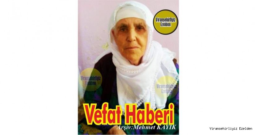 Viranşehir'li Hemşehrimiz YÜCEDAĞ Ailesinden Ali Yücedağ’ın Eşi(Éliye Meyro), Hatip Yücedağ, Sultani Yücedağ, İzzeddin Yücedağ, Abdurahman Yücedağ, Adnan Yücedağ, Mehmet Yücedağ ve Ahmet Yücedağ’ın Anneleri Münire Yücedağ Viranşehir’de Vefat etmiştir. Taziyesi Viranşehir Tekye Mahallesi Hacı Hassun Öztop Taziye Evinde Yapılacaktır. İrtibat Oğlu Adnan Yücedağ:0537 393 43 06
