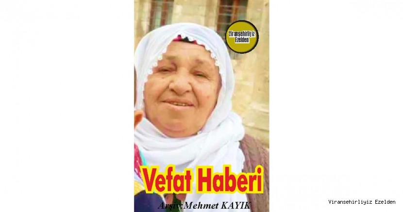 Viranşehir'li Hemşehrimiz ERKAN Ailesinden; Kazım Erkan’ın Eşi, Doğan Erkan ve Sultan Erkan’ın Yengeleri, Yaşar Erkan, Eyyüp Erkan, Enver Erkan, Murat Erkan, Erdal Erkan ve Sedat Erkan’ın Anneleri, Adle Erkan Viranşehir’de Vefat etmiştir. Taziyesi Viranşehir Bahçelievler Mahallesi Kırmızıtoprak Camii Taziye Evinde Yapılacaktır. İrtibat Doğan Erkan: 0507 066 63 13