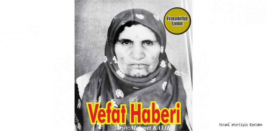 Viranşehir'li Hemşehrimiz GÜLDAŞ Ailesinden; Merhum Yusuf Güldaş’ın Eşi, Belediye Fen İşleri Müdürü Mahmut Güldaş, Öğretmen Aziz Güldaş, Vestel Servisi İsmail Güldaş, Merhum Ecevit Güldaş ve Mehmet Güldaş’ın Anneleri, Hacı Ayşe Güldaş Vefat etmiştir. Taziyesi Viranşehir Yenişehir Mahallesi Kemal & Veysi Tepret Camisi Taziye Evinde Yapılacaktır. İrtibat Oğlu Mahmut Güldaş: 0 505 226 45 77 – İsmail Güldaş:0532 179 60 23