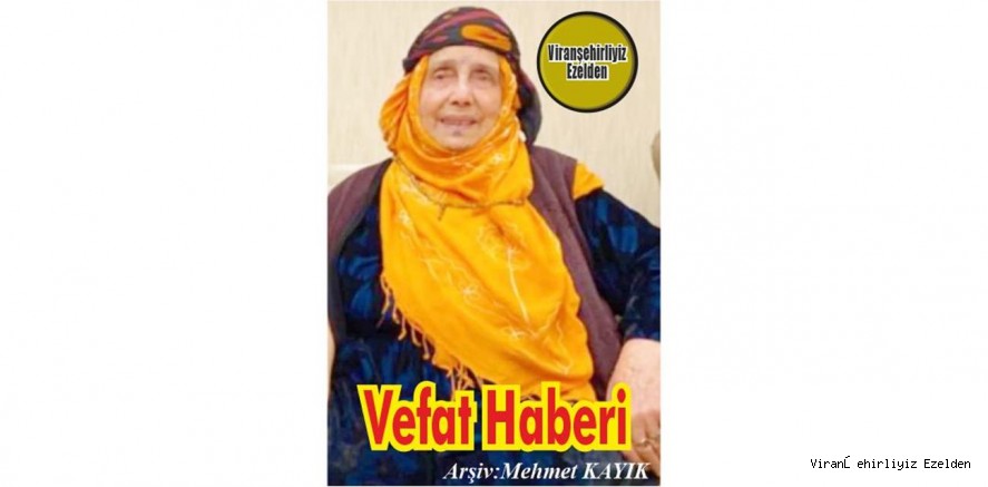 Viranşehir'li Hemşehrimiz KAPLAN Ailesinden; Şeyhmus Kaplan, Ali Kaplan, Mehmet Kaplan, Aziz Kaplan ve Feyzi Kaplan’ın Anneleri Hacı Zahra Kaplan Viranşehir’de Vefat etmiştir. Cenazesi Bugün 21 Ekim 2025 Salı Viranşehir Devlet Hastanesinden Alınarak Yeni Mezarlıkta Defin Edilecektir. Taziyesi Viranşehir Yenişehir Mahallesi Hacı Zahra Zencirci ve Hacı Mahmut Zencirci Taziye Evinde Yapılacaktır. İrtibat Oğlu Aziz Kaplan: 0542 788 39 37