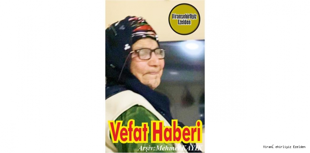 Viranşehir'li Hemşehrimiz YILDIZ Ailesinden; Merhum Hacı Nuri Yıldız’ın Eşi, Mehmet Yıldız, Mehmet Sait Yıldız’ın Anneleri Hacı Ğıne Yıldız Viranşehir’de Vefat etmiştir. Taziyesi Viranşehir Cumhuriyet Mahallesi Abdurrahman Malgir Taziye Evinde Yapılmaktadır. İrtibat Oğlu Mehmet Yıldız : 0541 342 70 91